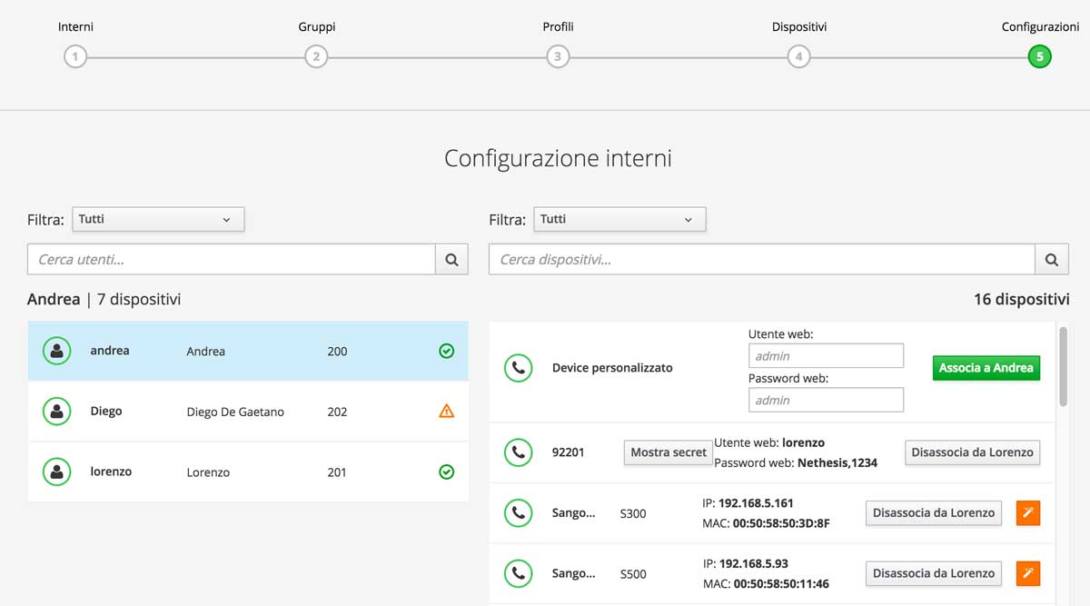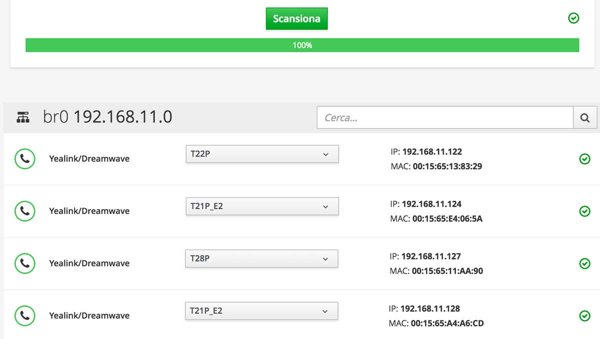 NethVoice can scan your network and detect all IP telephone devices of the most popular brands (Cisco, Yealink, Snom, Sangoma, Akuvox, Grandstream ...). With a simple wizard then automatically configure itself and profiles both the phone and the user.